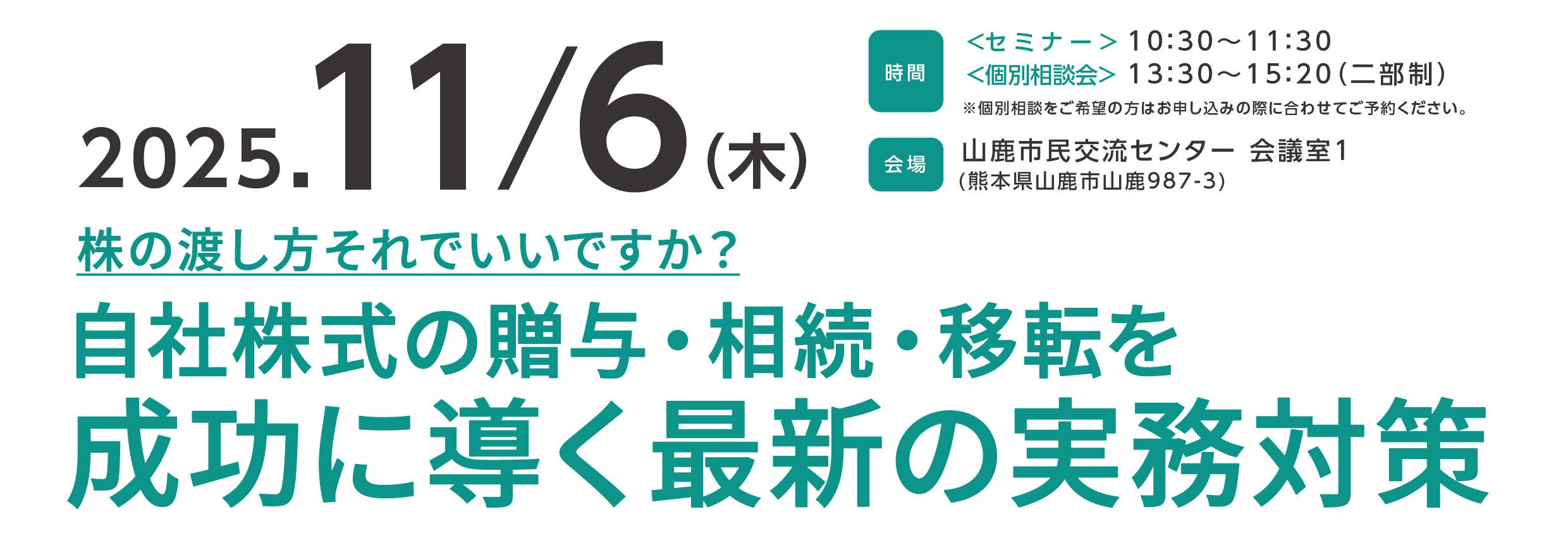 11/6㈭【参加無料】自社株式の贈与・相続・移転を成功に導く最新の実務対策