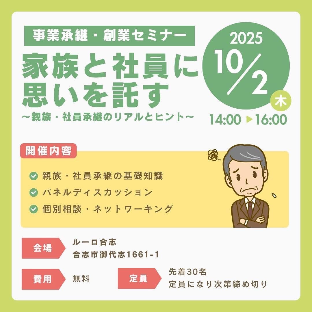 合志市主催の事業承継・創業セミナー 【家族と社員に思いを託す~親族・社員承継のリアルとヒント~】報告