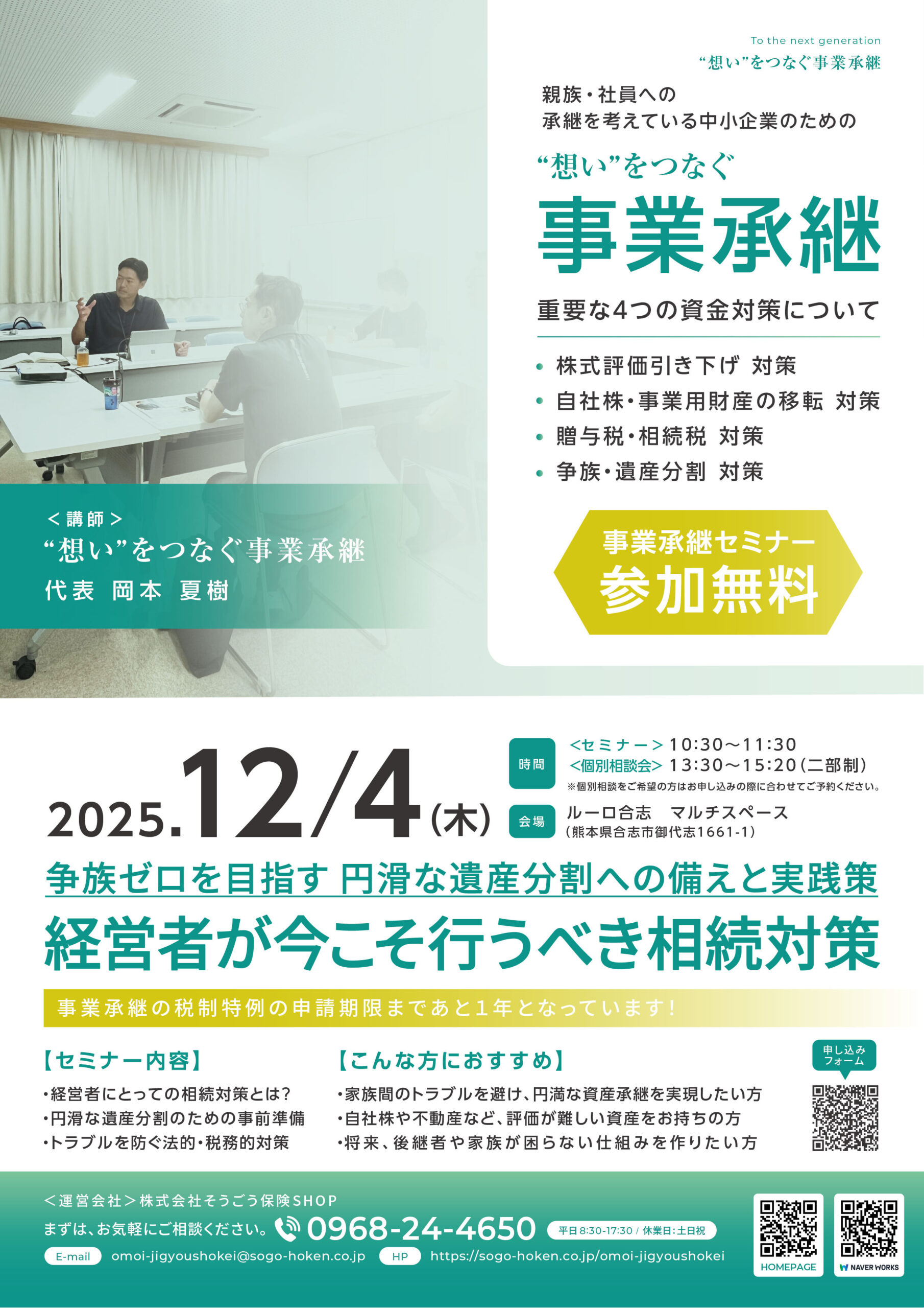 【親族・社員への承継を考えている中小企業のための事業承継セミナー】