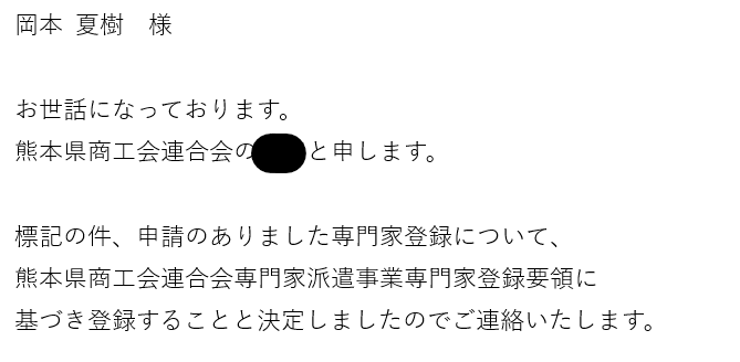 熊本県商工会連合会から、事業承継支援での専門家登録認定をいただきました