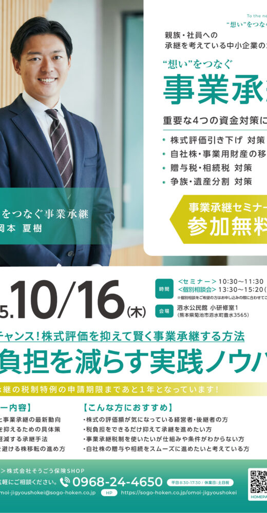 10/16(木)【経営者・後継者向け事業承継勉強会】~税負担を減らす実践ノウハウ~